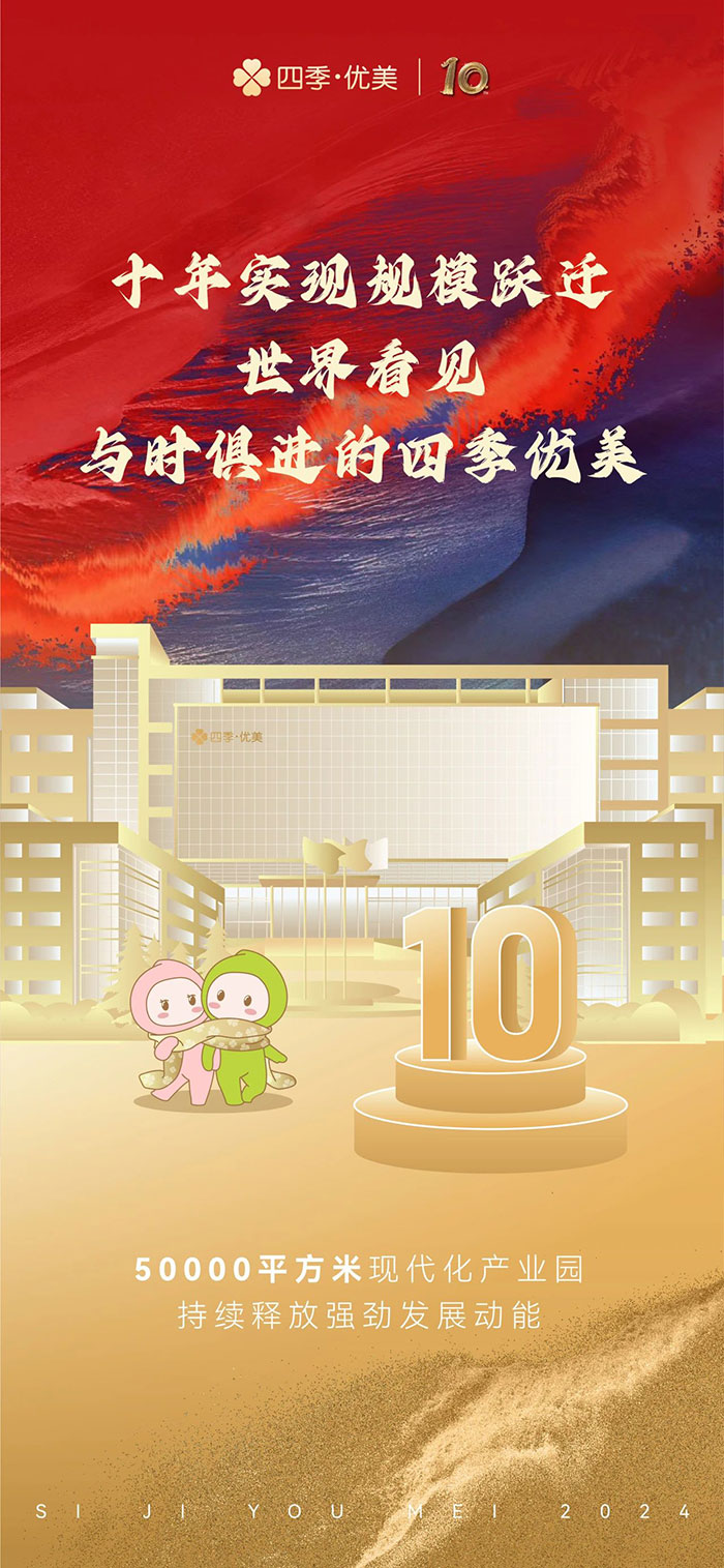 雖起于毫末,卻始終昂揚著萬丈豪情。遙想當年,我們如商海中的一葉扁舟,心中懷揣著遙遠的星辰大海。一群志同道合的伙伴,憑著一腔熱血,開啟了追夢之旅。十年間,四季優美經歷了市場的洗禮,見證了行業的興衰更替,實現了鳳凰涅槃般的驚艷轉身。我們深知,登頂而上的榮耀從不屬于偶然,而是勤勉、良知與智慧的結晶。正是這份堅守與執著,讓我們在激烈的市場競爭中生生不息,為自己,也為所有的國貨新勢力,做出了引以為豪的定義。十年商海競渡,我們始終以質為道,以誠為本,這是態度,更是情懷。我們堅信,在瞬息萬變中保持冷靜的定力,在迷眼亂花里堅守真誠的本心,即便步伐緩慢,亦能攀登至他人難以企及的高度。